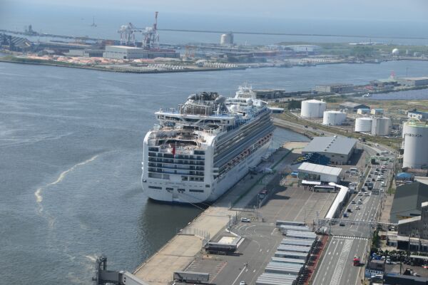 マリオンタワーから見た秋田港に接岸したダイヤモンドプリンセス