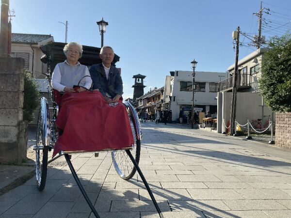 喜多院の次に蔵造りの町並みから人力車に乗り、時の鐘を通り菓子屋横丁まで行った