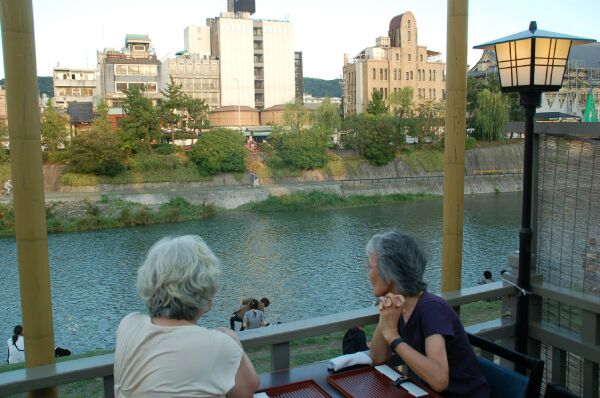 板塀小路から八坂神社を経て、先斗町へ行き川床料理を食べた