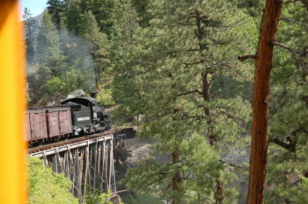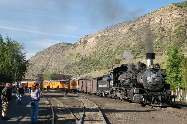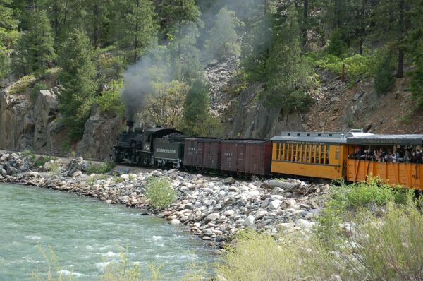 アニマス河沿いの峡谷を走るのだが、道路のスペースがなく道路は別ルートである。ポール・ニューマン 主演の映画明日に向かって撃ての列車を飛び降りるシーンはこの鉄道で撮られた