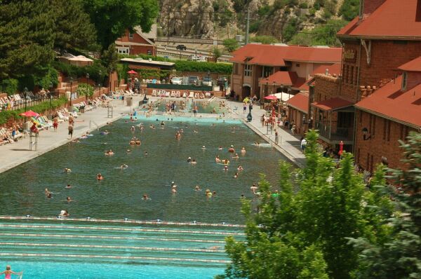途中のグレンウッドで昼食を摂った。ここにも温泉プールがあり、多くの人々が 泳いでいる。また、70号線沿いにはヴェイルなどおおくのスキー場があった