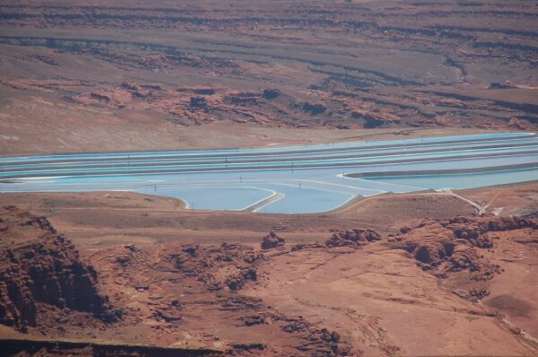 デッドホースポイントの近くにあるカリウム塩の塩田。肥料会社が州の許可を得て カリウムを採掘している