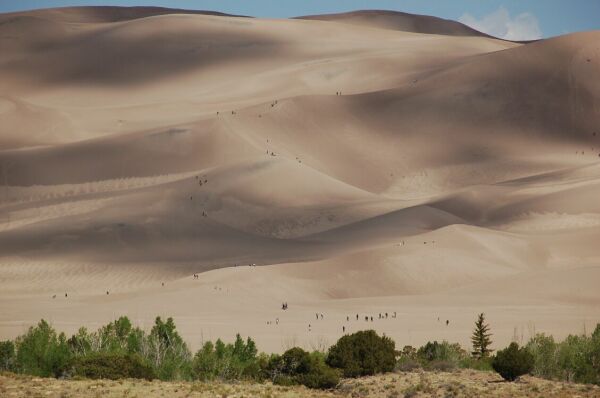 コロラド南部の町アラモサ近くの国立公園グレートサンドデューンへ行った。鳥取砂丘の 大型版である。最も高いところは229mである。標高が2500mなので登ると息が切れるが、 多くの人が登っている