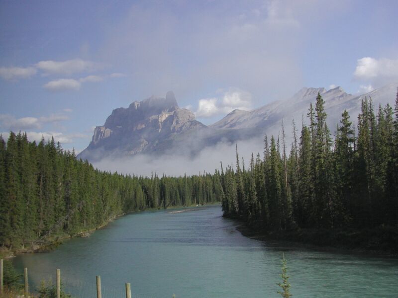 バンフからアサバスカ氷河までの道路沿いには、スイスにあったなら名前がつけられ有名に なっていたであろうと思われるいい山が沢山あった