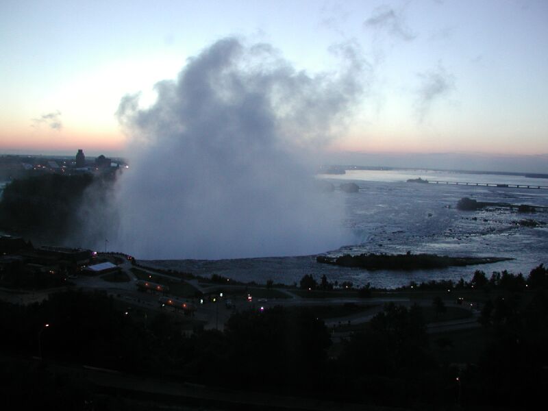 早朝のナイアガラの滝、24時間水は流れ続ける