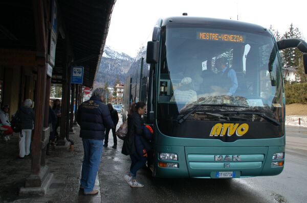 コルチナのバスセンタからヴェネツイアへ直行バスが往復している