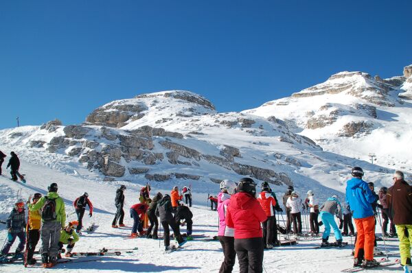 スキー客の数は数倍の大きさであった。そしてドロミテ山塊に囲まれたスキー場の景色は