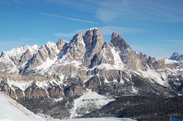 翌日はファローリアエリアを滑った。この写真はファローリアエリアで最も高いところから見た トレチーメである