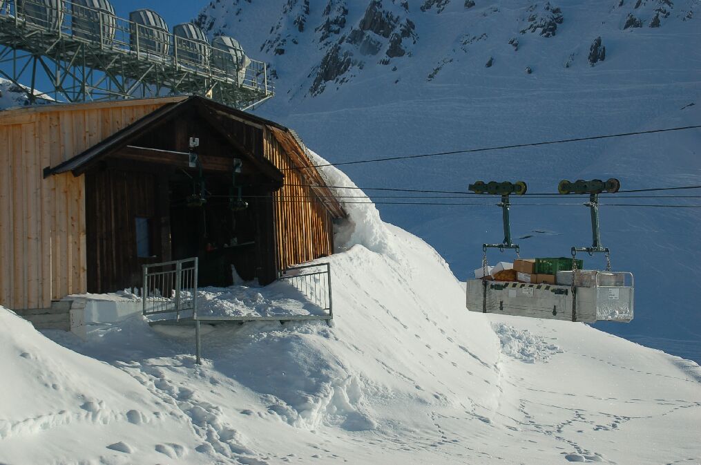 ウルマーヒュッテの食事、飲み物はこのようにして下の道にある倉庫からリフトで運ばれる