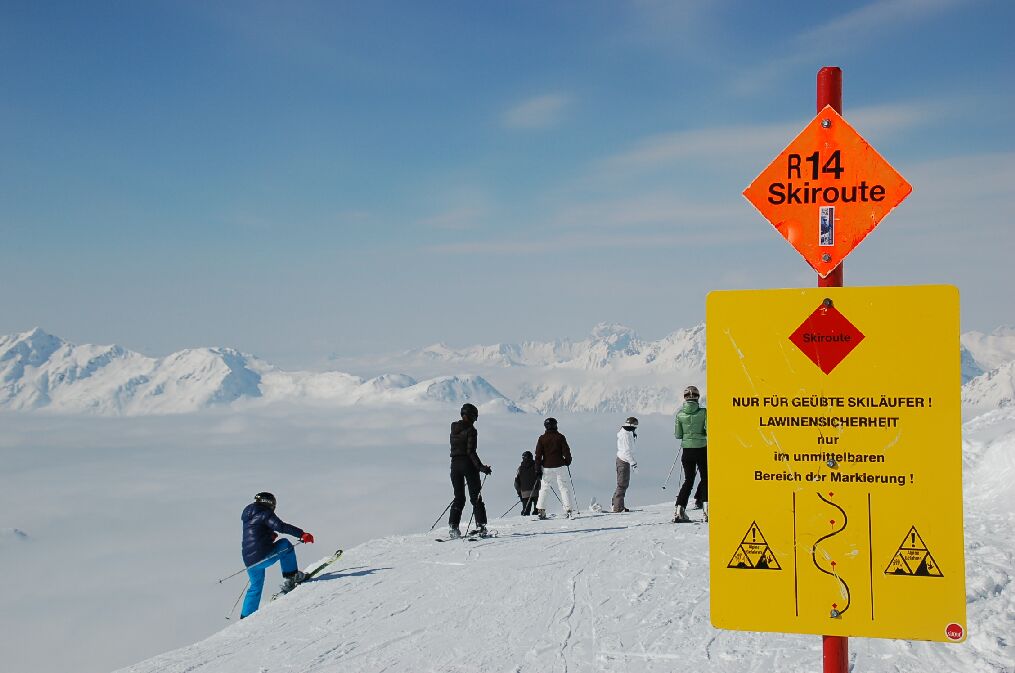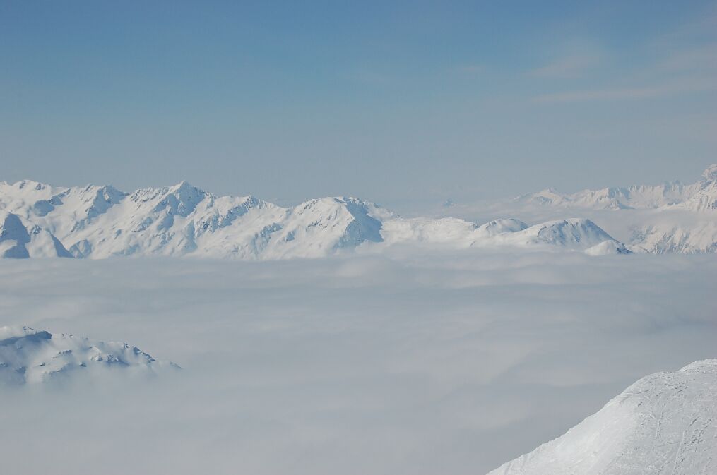 リッフェル2(riffel2)のリフトを降りたところ、Route14の始点である。サンアントンは雲の下という感じである