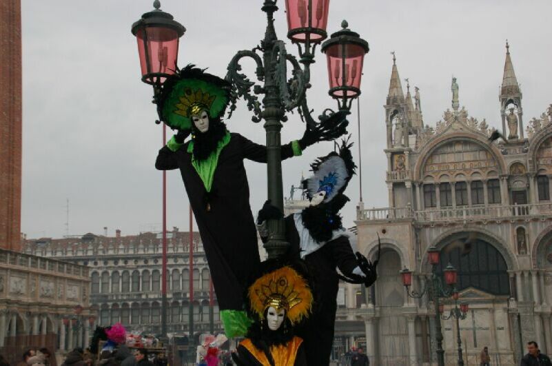 サンマルコ広場には仮装した人がたくさんいる