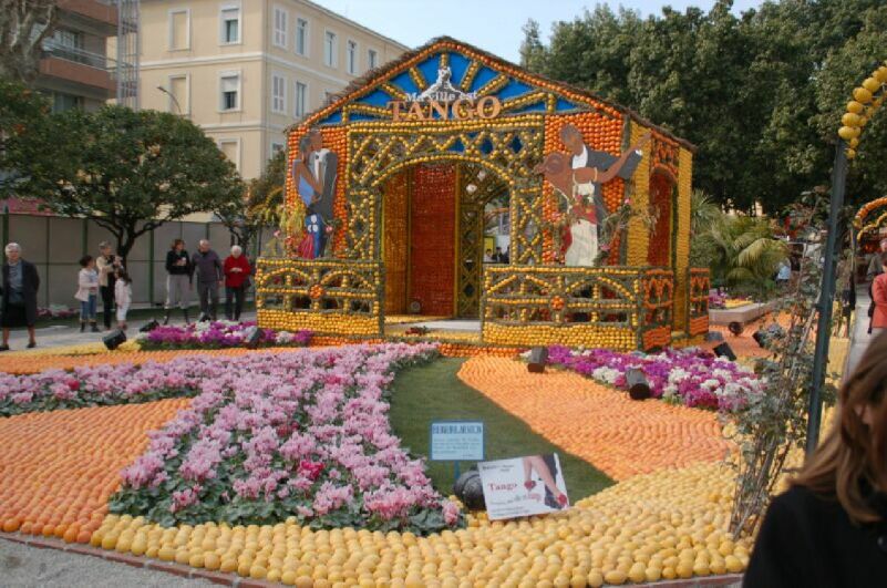 マントンのカーニバル、オレンジとレモンを使ったオブジェがあった、その大きいことにびっくりした