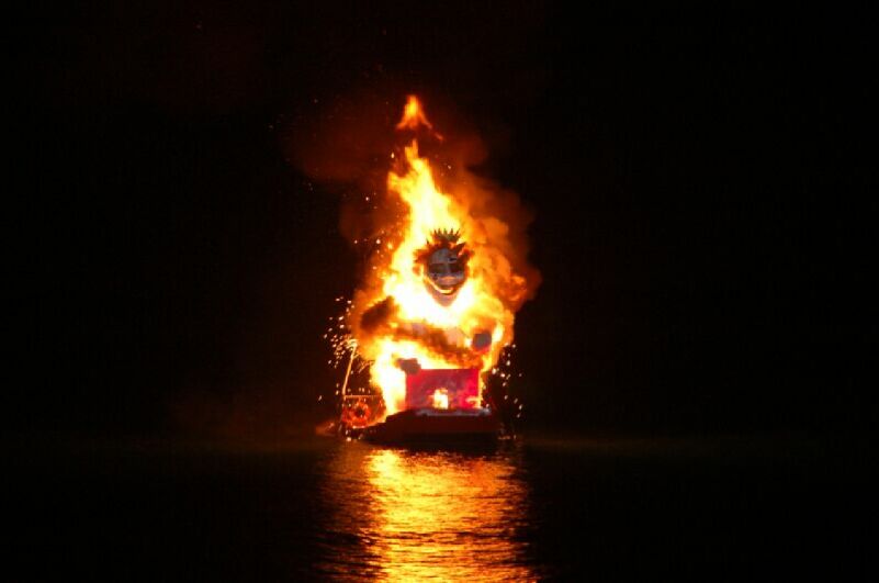ニースのカーニバル、フィナーレは王様の人形にニースの海上で焼き、花火を20分にわたりあげた