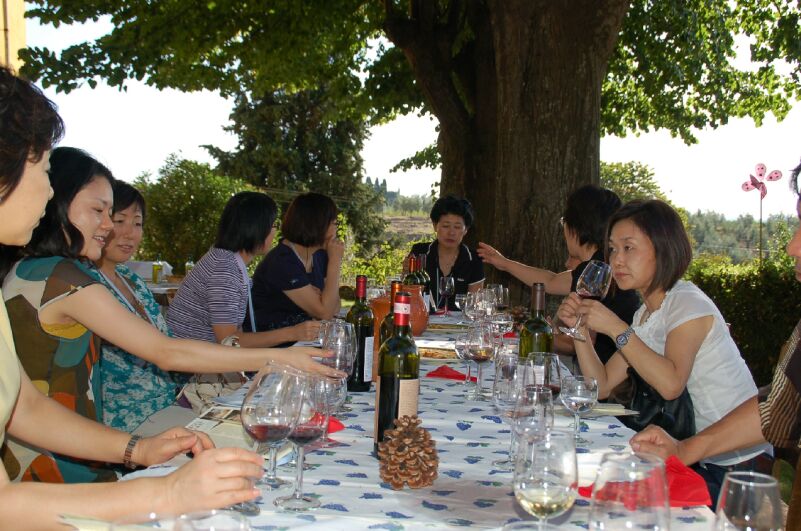 午後、ワイナリーカステッロでワインテイステイングをした。各年のワインが味わいきれない ほど出てきた。