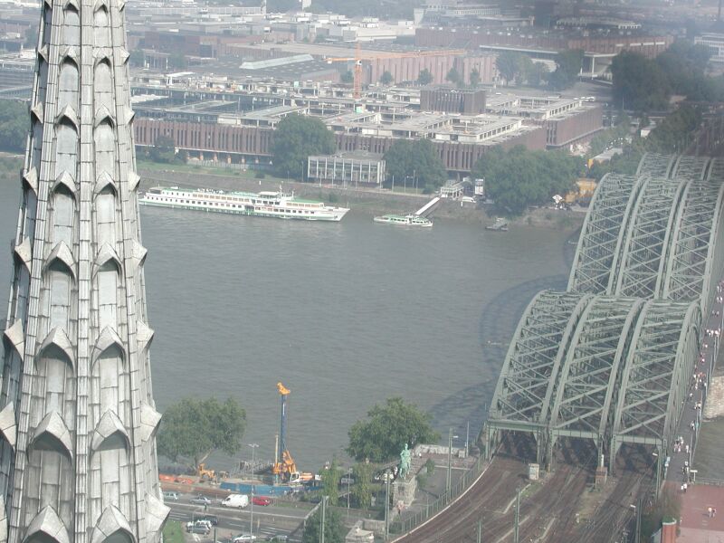 ケルン大聖堂に登った、ケルン大聖堂頂上から見たライン河