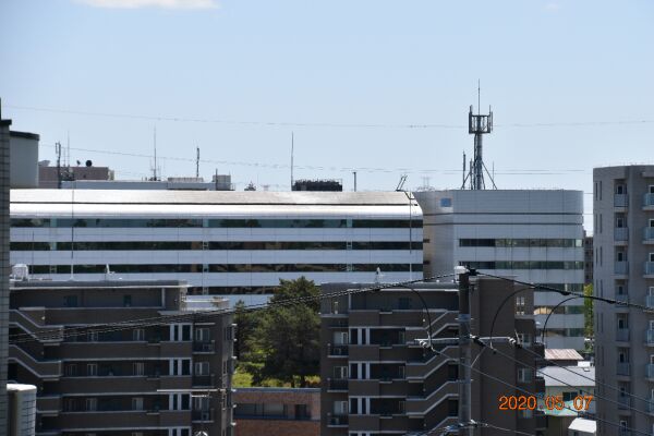 万福寺さとやま公園のはずれから見た新百合ヶ丘駅の駅ビル