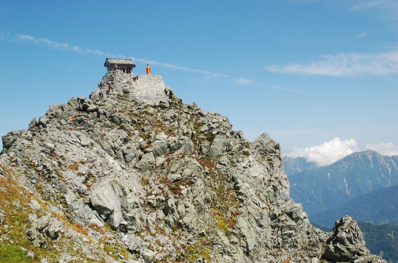 立山頂上、雄山神社、同行の山田氏が神主と会話している