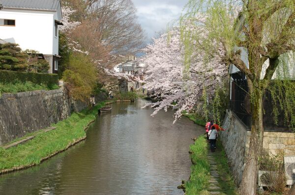 八幡堀のまわりには桜が植えられ、今回は丁度満開なので写真を撮った
