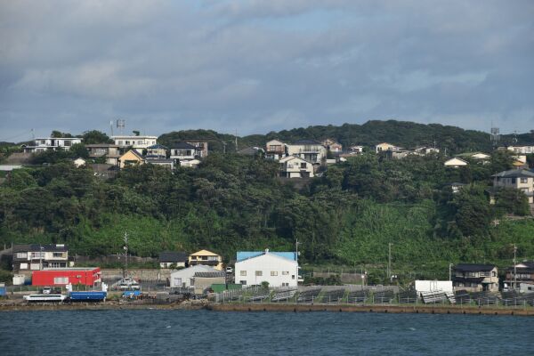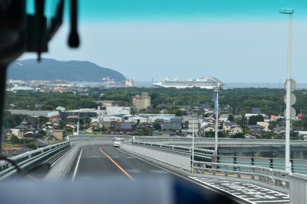 大根島と境港を結ぶ江島大橋から、境港に停泊中のダイヤモンド