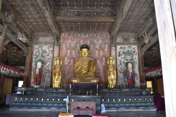 大雄殿の釈迦。表情は日本の仏像によく似ている