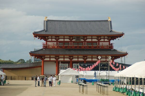 平城京跡に再建された朱雀門を見た