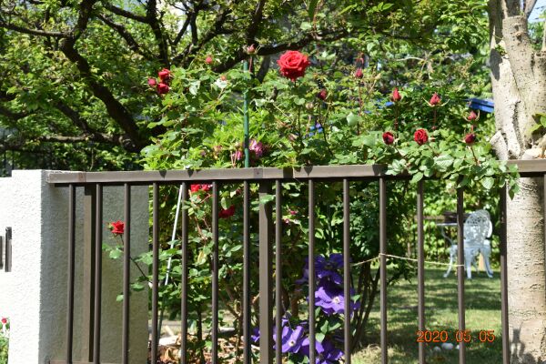 5月、今年のばらはクレマチスと一緒に開花しました(my garden)