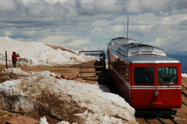 観光客は普段着でコグ鉄道に乗車したが、パイクス山頂上で寒さに震えることになる
