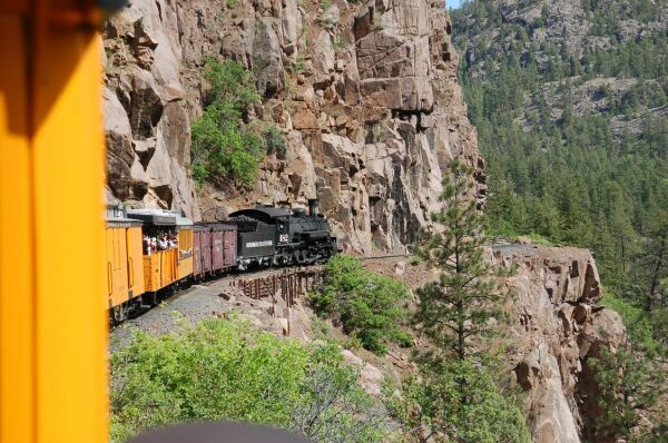 アニマス河沿いの峡谷を走るのだが、道路のスペースがなく道路は別ルートである。ポール・ニューマン 主演の映画明日に向かって撃ての列車を飛び降りるシーンはこの鉄道で撮られた