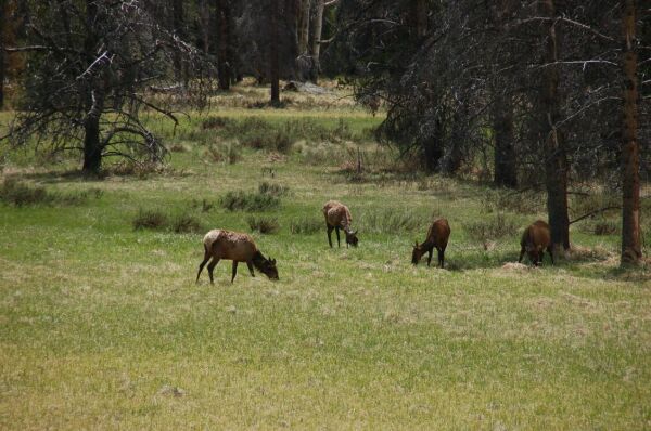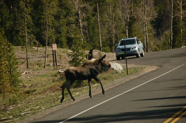 ロッキイマウンテン国立公園では多くの動物を見た。道路を渡るムースの雌
