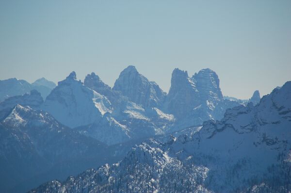 翌日はファローリアエリアを滑った。この写真はファローリアエリアで最も高いところから見た トレチーメである