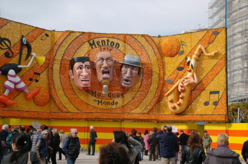 マントンのカーニバル、オレンジとレモンを使ったオブジェがあった、その大きいことにびっくりした