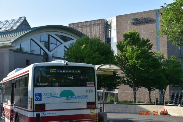 昭和音楽大学の前のバス通りで、新百合ヶ丘駅方向を見た風景