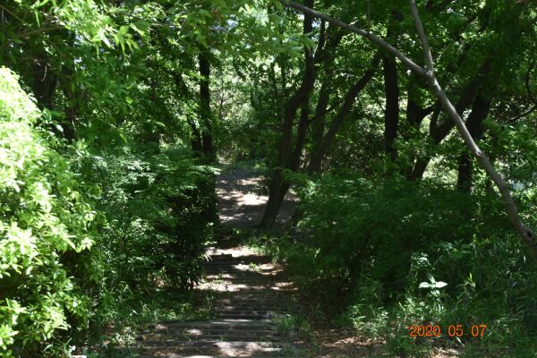 王禅寺見晴し公園から3分程坂を下り、弘法の松の三差路の信号を左に1-2分行き、階段を