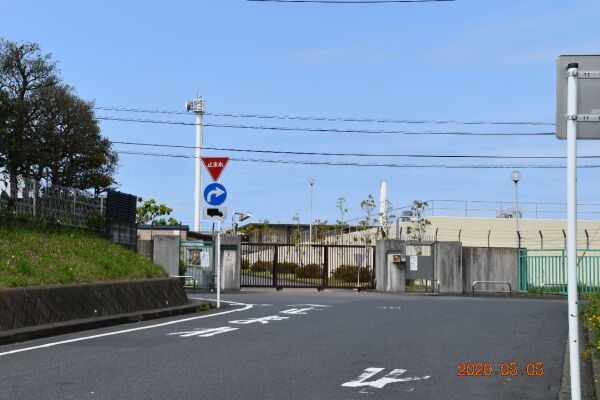 西長沢公園、西長沢浄水場を廻って戻る途中右の丘の上に長沢中学校がある。 ここは長沢中学校裏側の坂